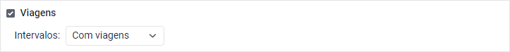 Exemplo. O usuário executa um relatório de visitas á cercas eletrônicas e deseja que o sistema ignore coordenadas falsas enviadas pela unidade enquanto estacionada para que a visita em questão não seja dividida em várias visitas. Para isso, ele deve habilitar o filtro Viagens e selecionar a opção Com viagens.