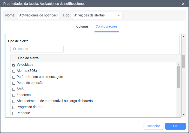 Tipo de alerta