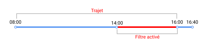 Se a opção estiver habilitada, apenas a parte da viagem das 14:00h às 16:40h é mostrada.