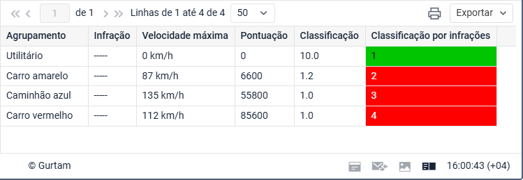 Depois disso, unidades ou motoristas recebem seu número na coluna Classificação por infrações. A melhor (menor) pontuação é 1. A unidade ou motorista com o melhor desempenho recebe os pontos mais baixos de classificação, pois cometeu menos infrações.