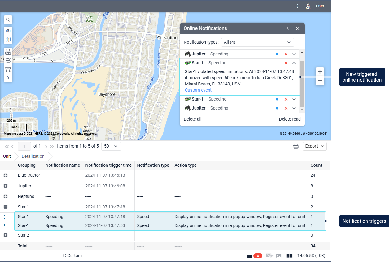 - Mensagens de unidade: outros tipos de alertas são acionados quando uma mensagem de unidade com determinados parâmetros é recebida.