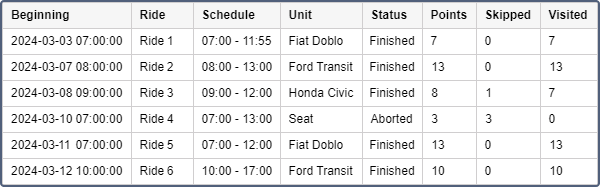 Se a rota foi concluída por algumas unidades, então, com base nesses dados, é possível gerar um relatório com a tabela Itinerários para esta rota.