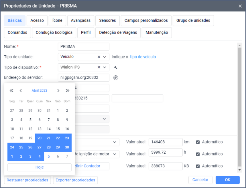 Se você alterar ou excluir por engano dados em uma determinada aba das propriedades da unidade, será possível restaurá-los. As configurações das propriedades salvas nos últimos 14 dias ficam disponíveis para recuperação. Essas configurações são salvas automaticamente em um servidor separado uma vez a cada 24 horas.