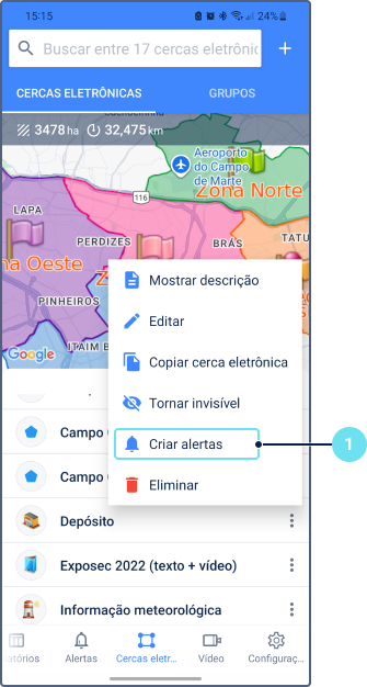 Criar alertas para cercas eletrônicas