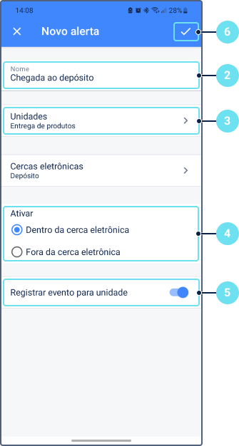 Para criar uma alerta para uma cerca eletrônica, siga as etapas abaixo.