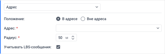 - Выберите, когда условие должно срабатывать: когда объект находится по указанному адресу (В адресе) или в любом другом месте (Вне адреса).
