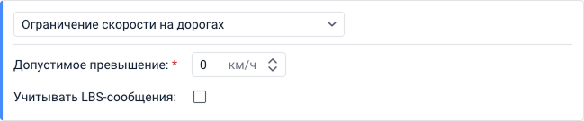 Для этого типа контроля вы можете указать количество километров в час, на которое можно превысить ограничения с карт (поле Допустимое превышение).