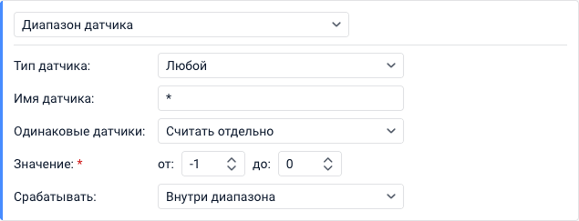 С помощью этого условия вы можете контролировать параметры датчиков в сообщениях. Оно позволяет контролировать параметры, отправляемые устройством, и не включает контроль виртуальных параметров (sats, speed, lat и так далее).