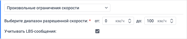Уведомление с этим условием срабатывает, если значение скорости выше или ниже разрешенного диапазона.