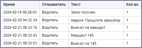 | Отправитель | Водитель либо оператор (в скобках указывается имя пользователя). |
