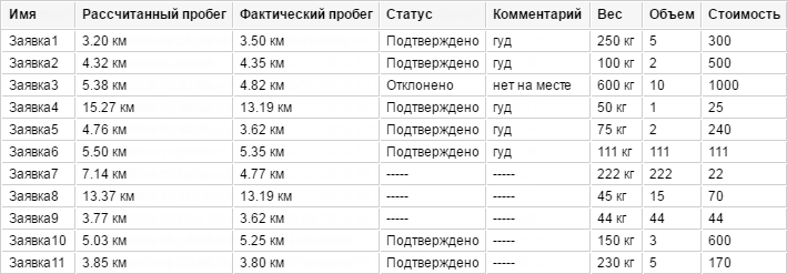 | Потрачено топлива | Объем топлива, потраченный на доставку. |
