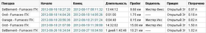 | Поездка | В этом столбце указываются начальная и конечная точка движения через дефис (имена геозон или объектов). |