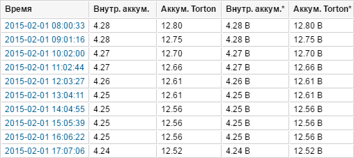 Эта таблица показывает значение датчика в определенные точки времени. При экспорте в MS Excel это позволяет на основе полученных данных создавать пользовательские графики.