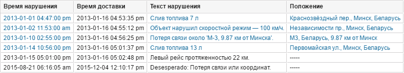 | Водитель | Имя водителя, если таковой был идентифицирован. |