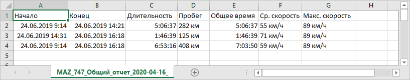При экспорте отчета в файлы PDF, HTML, Excel применяется автоматическое выравнивание столбцов. Столбцы с текстом (названия датчиков, команд, геозон, имена водителей, пользователей, текст событий, SMS, местоположение объекта и т.п.) выравниваются по левому краю. Столбцы с численными данными (время, длительность, скорость, пробег, топливо, платежи, количество и т.п.) выравниваются по правому краю. Названия таблиц и столбцов таблиц выравниваются по центру.