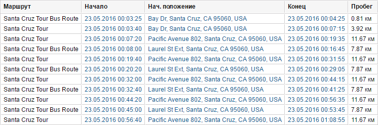 Если объект проходил маршруты, то на основе них можно построить соответствующий отчет. В него могут быть включены столбцы, описанные ниже.