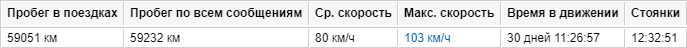 | Пробег в поездках | Пробег за отчетный интервал с учетом детектора поездок. |