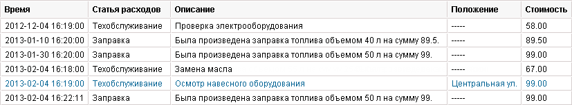 | Время | Время, которое при регистрации техобслуживания или заправки было указано как время совершения работ. |
