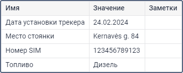 Отчет с таблицей Произвольные поля может выполняться для объектов, групп объектов, пользователей, водителей, групп водителей, прицепов и групп прицепов. Таблица представляет собой список названий и значений произвольных полей, указанных в свойствах элемента, по которому выполняется отчет.