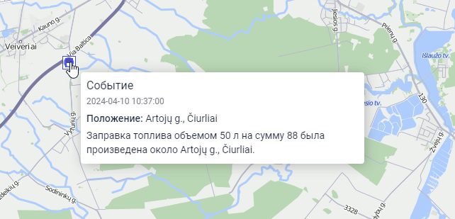 | Положение | Местоположение объекта в момент свершения события. Если событие зарегистрировано вручную, то положение объекта определяется по его сообщениям в момент регистрации. Кроме того, таким же образом определяется положение объекта при сохранении значений счетчиков. |