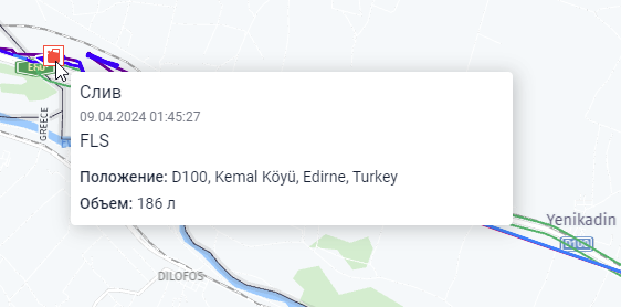 Можно настроить также отображение специальных маркеров на карте в местах сливов.