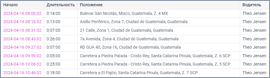 | Водитель | Имя водителя, если таковой был идентифицирован. |