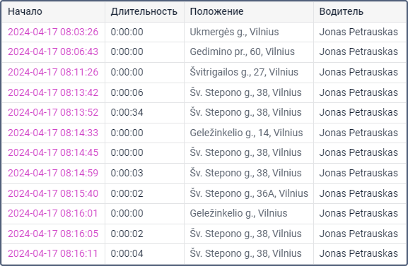 Этот тип отчета удобно использовать в сочетании с маркерами остановок на карте.