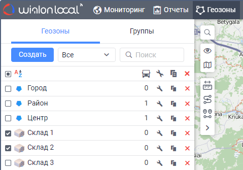 Чтобы получить отчет по поездкам между геозонами, нужно предварительно создать геозоны, определяющие начало и конец поездки. Предположим, что нужно перевезти груз из пункта А в пункт В и на это понадобится не один рейс. В таком случае необходимо создать соответствующие геозоны, а затем в шаблоне отчета указать их в качестве отправного и конечного пунктов.