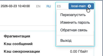 - Меню администратора: меню, которое открывается после нажатия на кнопку с именем пользователя и значком шестерёнки. Меню включает следующие опции: