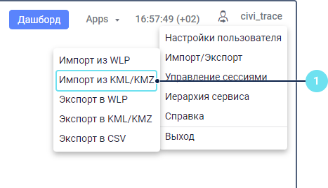 В меню пользователя выберите пункт Импорт/Экспорт и затем — Импорт из KML/KMZ.