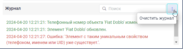 Чтобы очистить журнал от записей, нажмите на иконку настроек