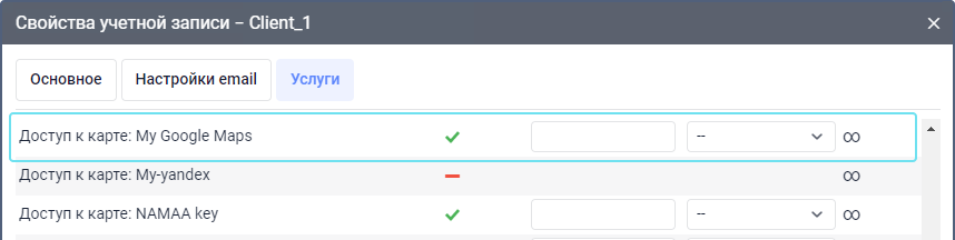 В настройках пользователя на вкладке Карты выберите Google как источник карт, геоданных или маршрутизации в зависимости от типов сервиса, указанных на шаге 6 раздела Создание и настройка услуги.