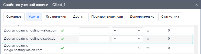 Убедитесь, что в свойствах учетной записи включены услуги для доступа только к нужным сайтам (группа Сайты).