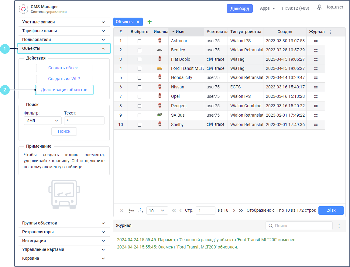 Деактивированные объекты — это объекты, которые временно недоступны в системе мониторинга. Деактивация может понадобиться в случае, если объект используется в течение определенного периода в году и не нуждается в наблюдении в остальное время.