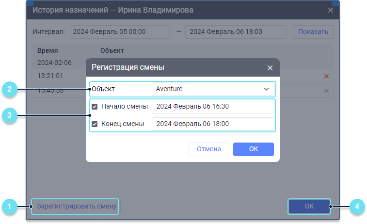 Регистрация смен