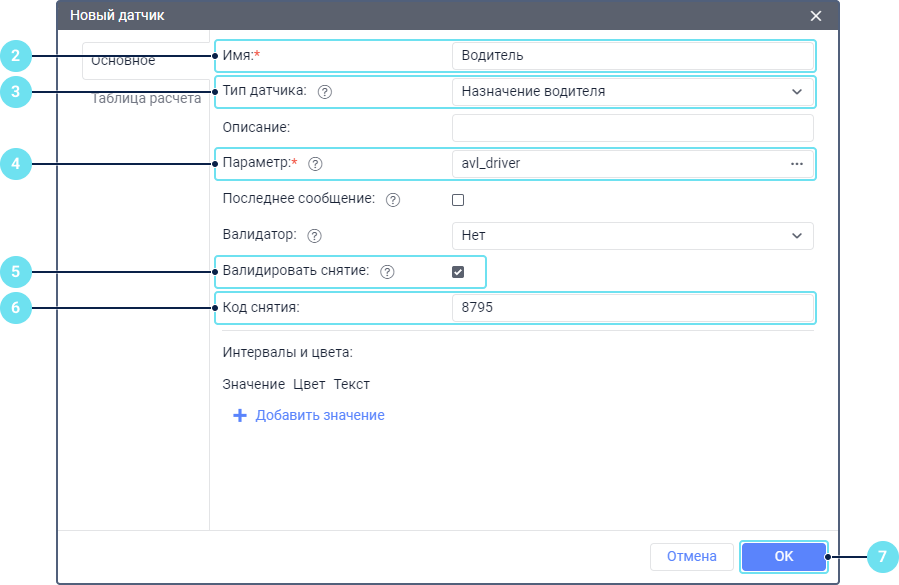 Укажите параметр датчика в соответствии с настройками используемого оборудования. Например, avl_driver. Нельзя указывать параметр из предыдущего сообщения для датчика Назначение водителя и его валидатора.