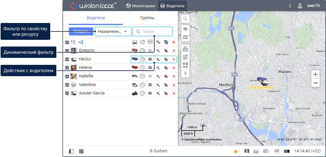 - Отметьте необходимого водителя в списке на вкладке Водители.