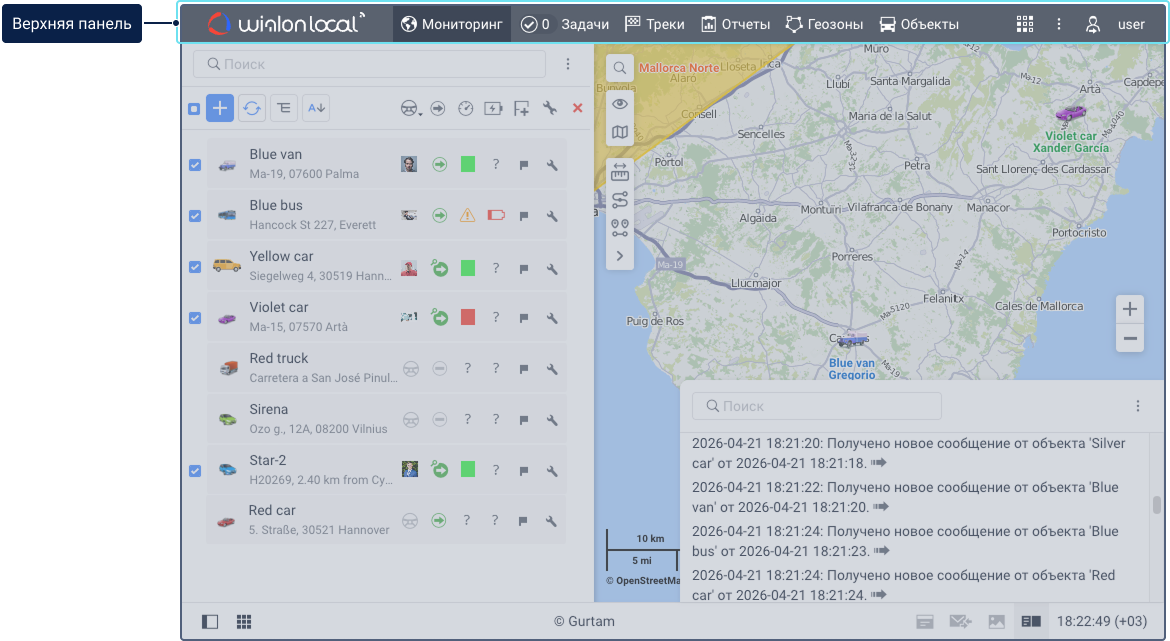 В интерфейсе системы можно выделить следующие основные элементы: