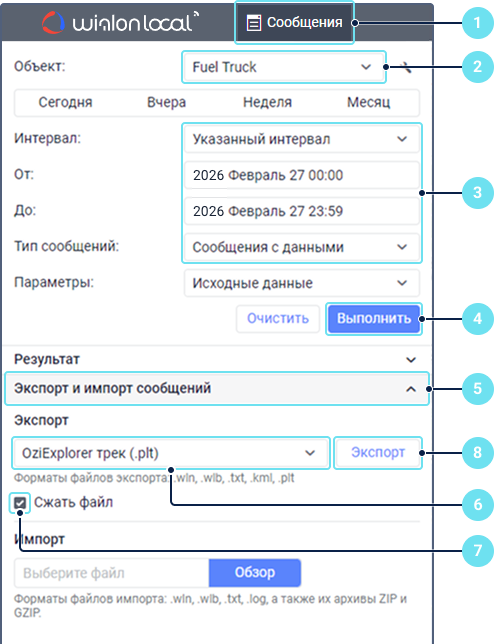- Сообщения Wialon — поиск в файлах с расширением .wln.
