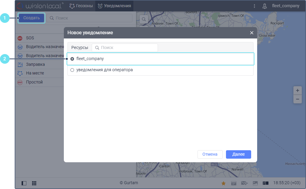 Выберите объект или объекты, для которых необходимо создать уведомление. Объекты выбираются так же, как и при создании заданий.