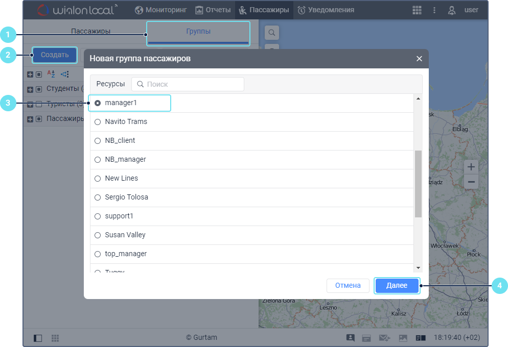 - Выберите ресурс, в котором необходимо создать группу пассажиров.