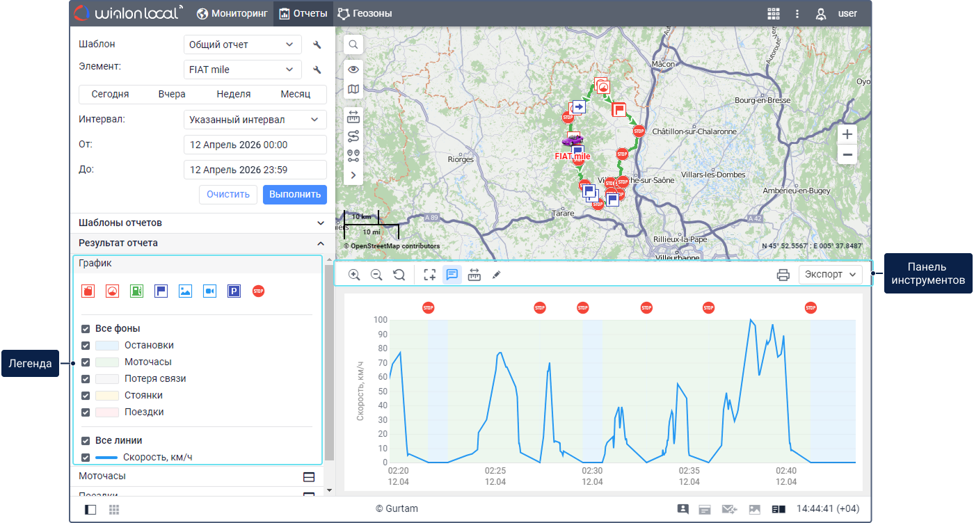 Отметить события как ложные. Доступно только для графиков типа Обычный. Пользователь должен иметь право доступа Создание, редактирование и удаление шаблонов отчетов на ресурс, в котором хранится отчет. Чтобы видеть в отчете заправки и сливы, отмеченные как ложные, в настройках отчета должна быть включена опция Показывать ложные события. Если в настройках пользователя включена опция Отрисовывать графики на сервере, вы не можете отмечать заправки и сливы как ложные. Чтобы исключить из расчетов ложные заправки и сливы, выполните следующие действия: