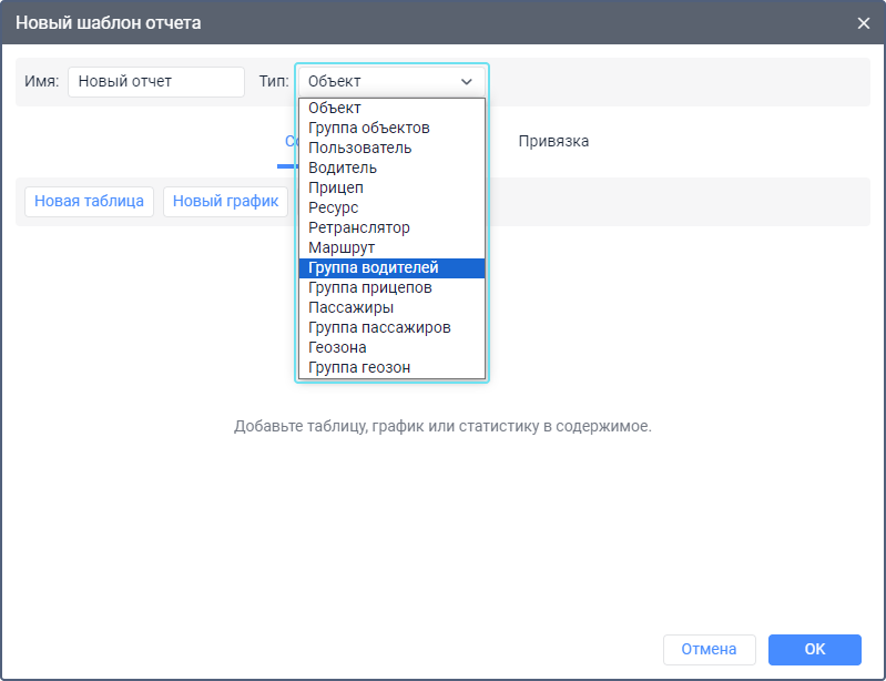 | Группа прицепов | Шаблон используется для анализа работы нескольких прицепов одновременно. |