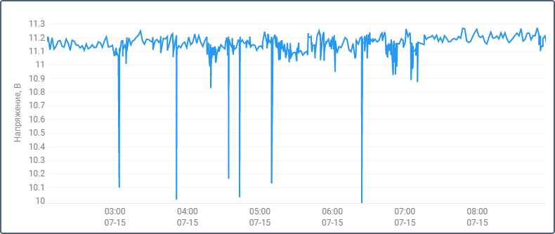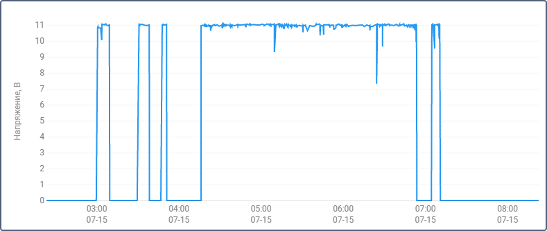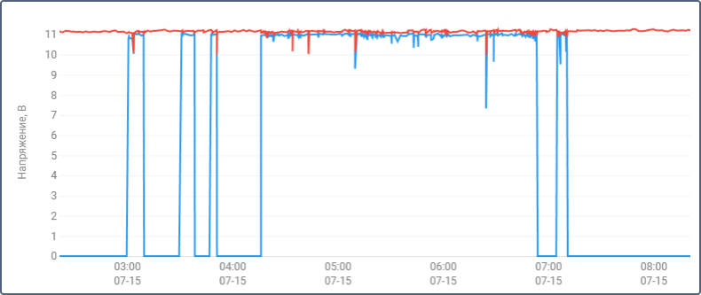 Если по нескольким данным, выбранным для графика, есть по несколько датчиков, то разделению подлежит верхний в списке. Например, для отображения на графике выбраны напряжение и температура (напряжение в списке расположено выше). Допустим, у объекта есть два датчика температуры и два датчика напряжения. Если опция Разделять датчики не активирована, то отчет содержит один график с четырьмя линиями на нем. Если активирована, — два графика с тремя линиями на каждом: на первом — первый датчик напряжения и оба датчика температуры, а на втором — второй датчик напряжения и оба датчика температуры.