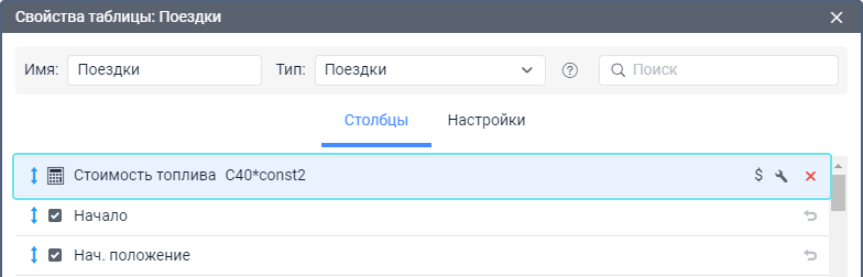 Административные произвольные поля можно добавлять в отчеты по объектам, группам объектов и пользователям.Значение из предыдущей строки Формула может содержать значение из предыдущей строки любого столбца в формате #CN, где CN — индекс колонки. Константы В формуле можно использовать константы в формате constN, где N — любое число. Например:const-1.5,const10и т. п.Математические операции Допускаются следующие математические операции: - сложение (