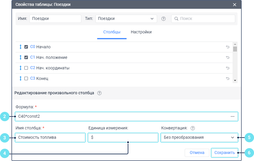, имени столбца, формуле или единице измерения, внесите необходимые изменения и сохраните их.