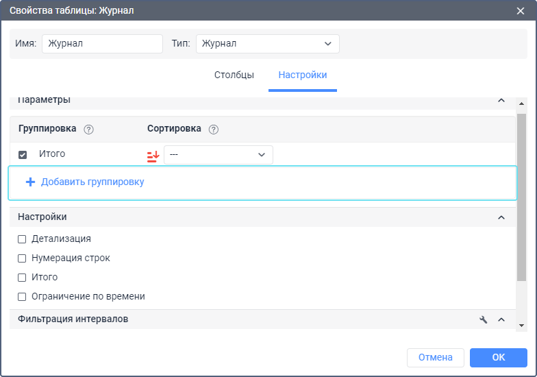 Для добавления новой группировки нажмите на Добавить группировку, выберите временнóй интервал в появившемся выпадающем списке и нажмите Добавить.