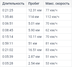 - Средние поездки — до 1 часа,