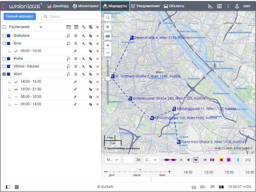 | Расписание | График прохождения контрольных точек маршрута по времени. Для маршрута можно создать любое количество расписаний. Подробнее о создании расписаний читайте здесь. |