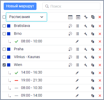 Действия, которые можно выполнять с расписаниями, описаны на странице Работа с маршрутами.